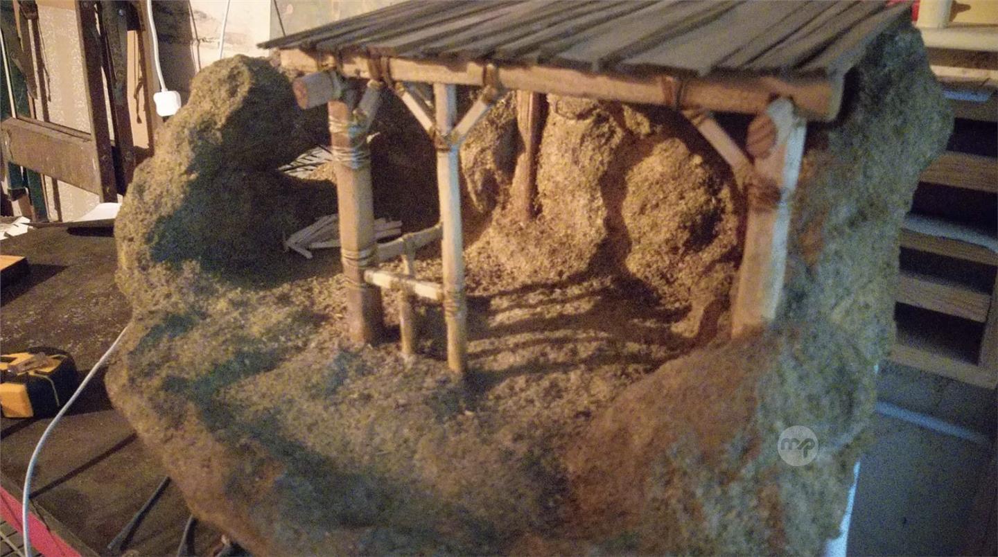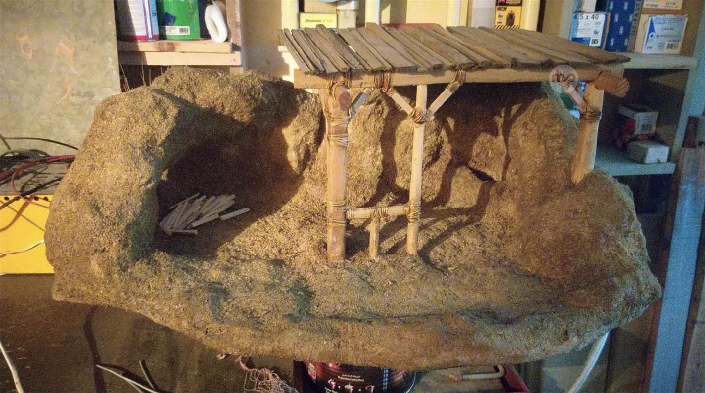 Presepju bid-dawl ghall-bejgh. Qies 62cm x 43cm x 30cm. Maghmul mill-kartapesta, gibs u injam. Prezz €75 negozzjabbli.