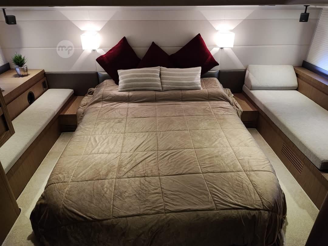 This gt44 is the top of the range model that you can get which have walnut interior, 3 ac's, built in pasarella, interior bose speakers with subwoofers, 3 tv's,all kitchen and toilet water mixers are like new, leather sofa like new no swirls, 2 large beds and a sofa that sleeps 8 inside. Kitchen with led underneath and bed with led underneath, built in with battery and water computer. 2 bathrooms 2 showers new carpet from big ben to keep the walnut floor like new. Hob never used, microwave/grill black and gray holding tanks, platform camera, 6 hertz speakers,2subwoofers hertz and 3 amplifiers, electric hardtop sunroof, very nice dashboard with all analog and digital display, simrad autopilot, simrad gps, x2 fushion sound controllers, bbq grill and sink, c shape seats with like new cushions, usb mobile charger, volvo zip wakes, volvo joystick, automatic garage for tender with winch inside, all teak is nice and taken care of it. Electric anchor, front deck cushions with up position and much much more which I cant remember but you can ask me and I will answer.