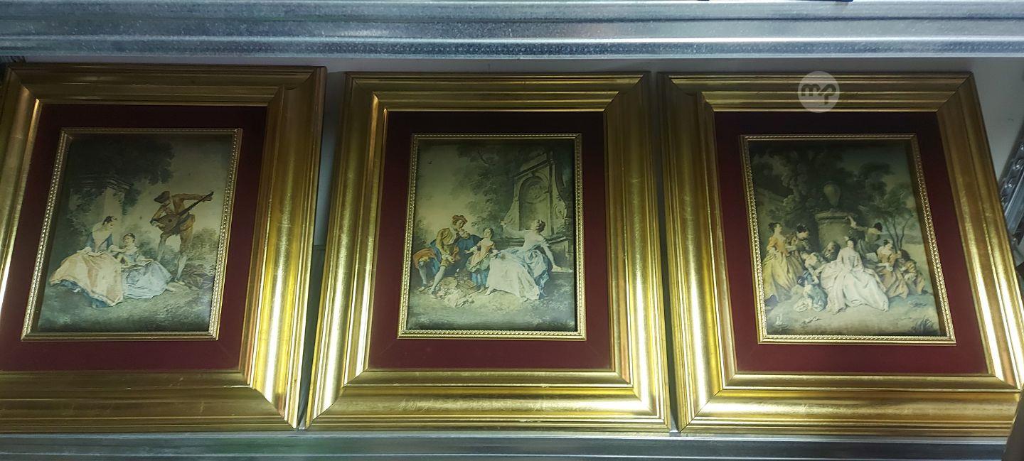 3 Gold frames with cushioned pictures