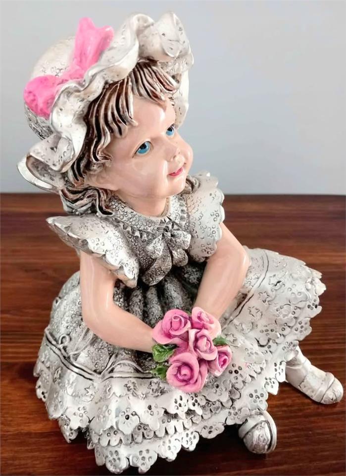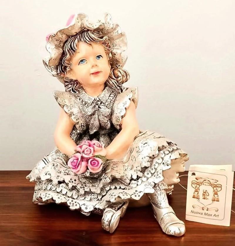 GIRL FIGURINE ARGENTO LAMINATO (SILVER PLATED) MADE IN ITALY with CERTIFICATE and ORIGINAL BOX
