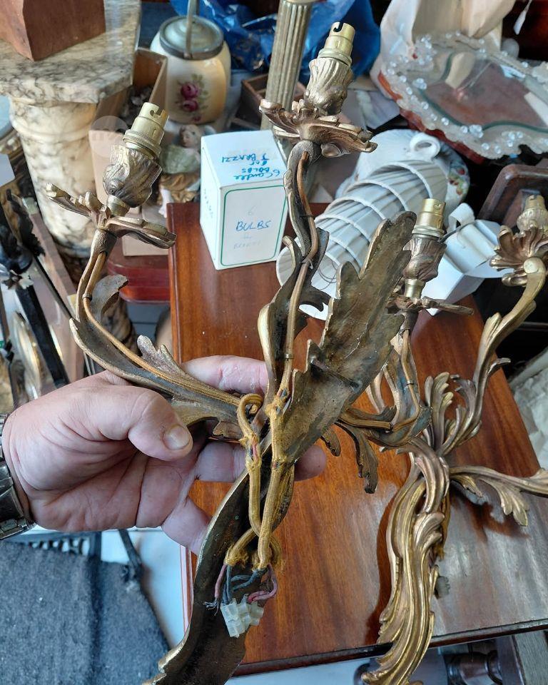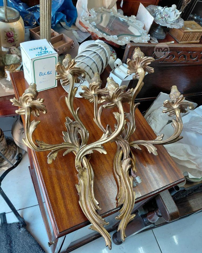 Pair Solid gilt Bronze 3 branch each French wall lights In perfect condition
