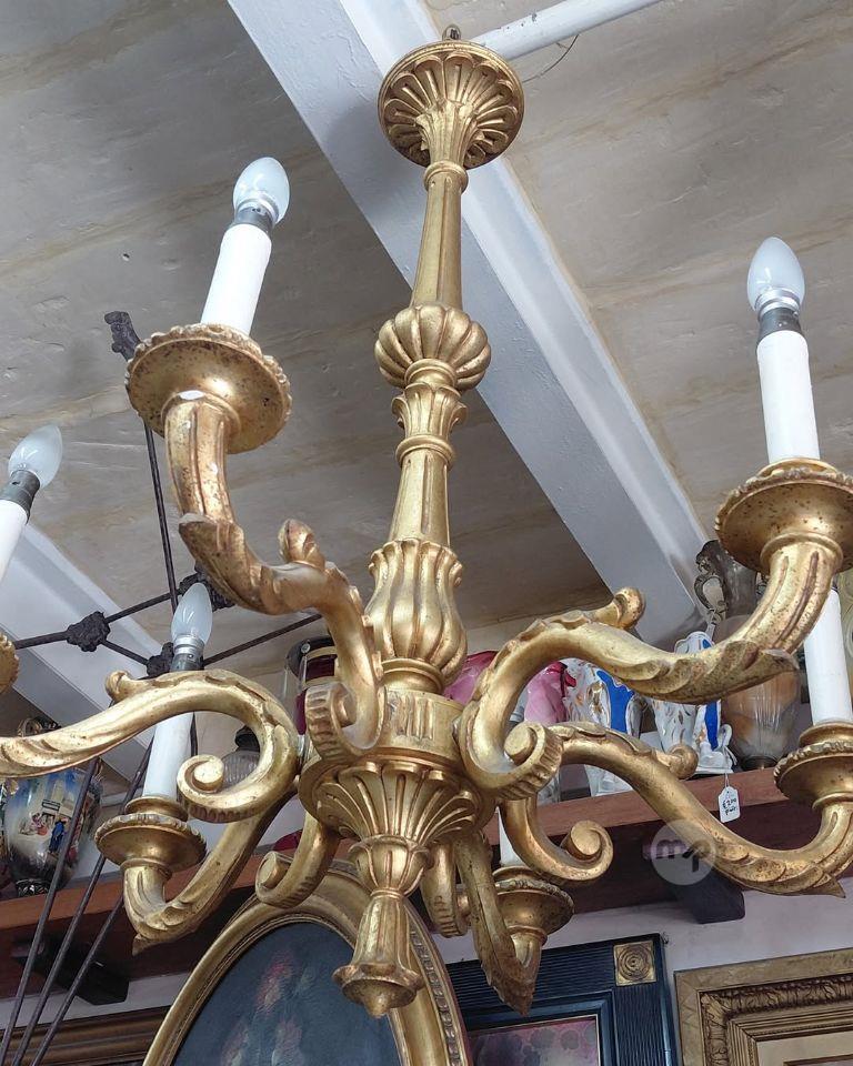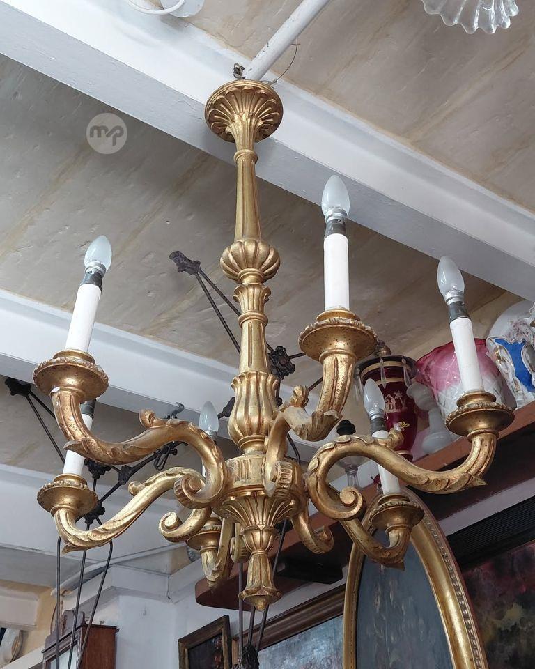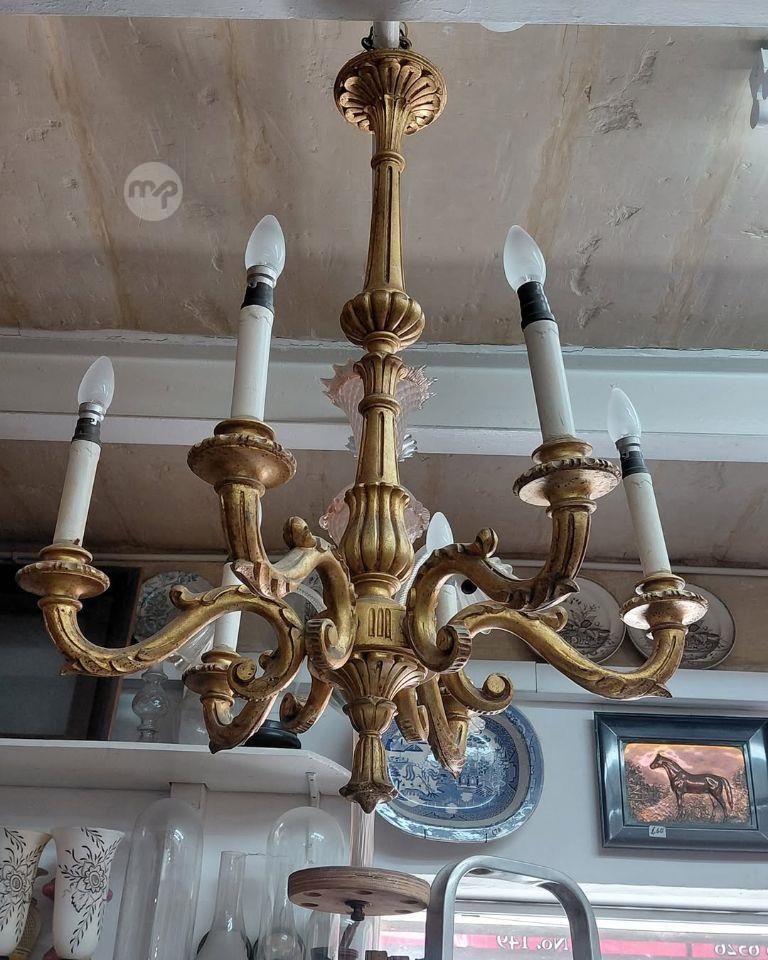 A Carved wood gilt/probably Italian 6 branch chandelier Price of 120 euros