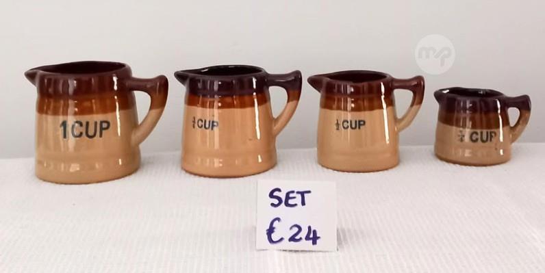 SET OF 4 VINTAGE EARTHENWARE MEASURING CUPS (FUHHAR)