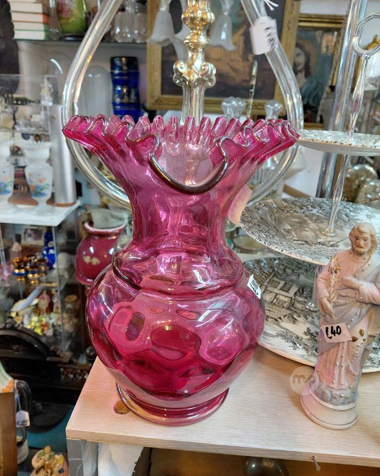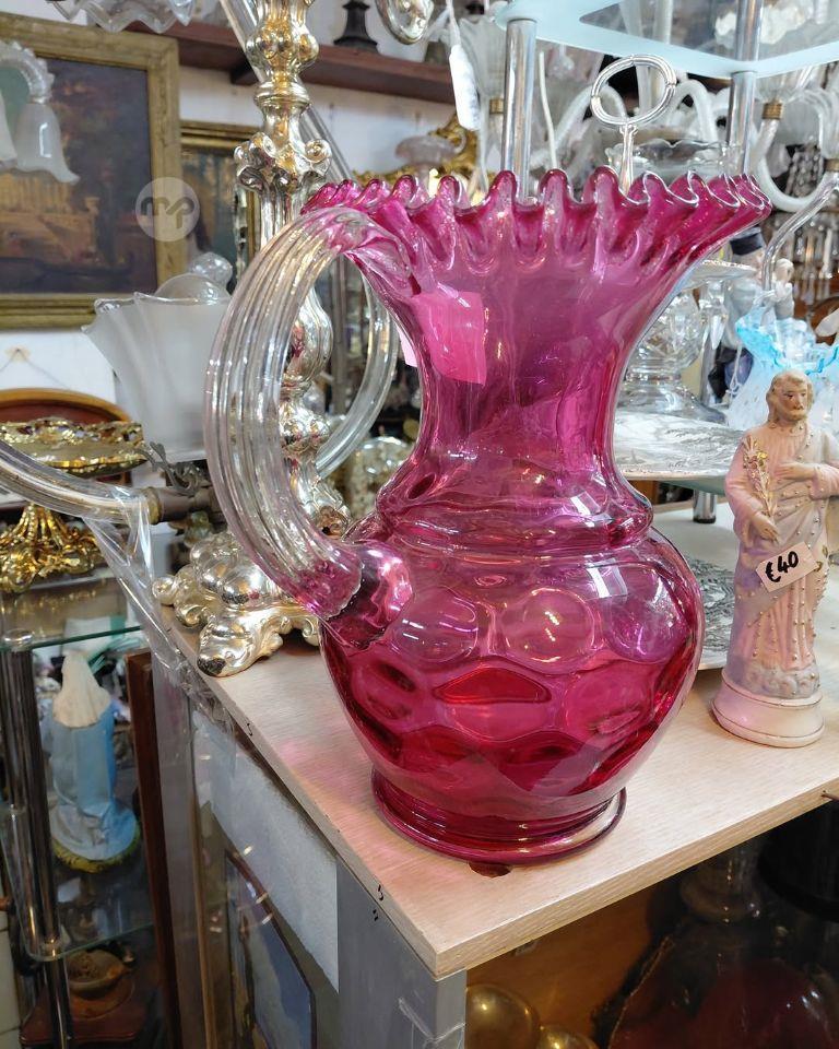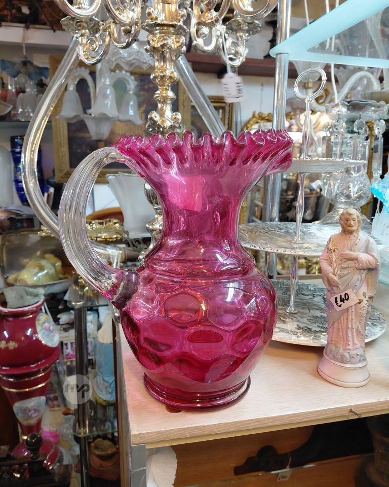 Large,in perfect condition Cranberry glass water Jug Ruffled rim 26 cm long