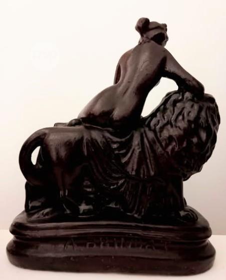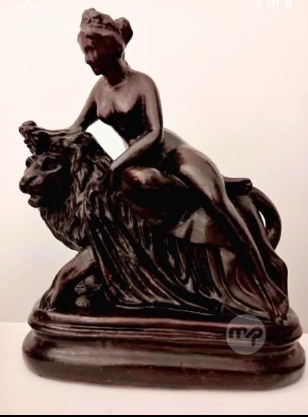 SCULPTURE BY A BRINCAT OF LADY AND LION IN GESSO (GIBS)