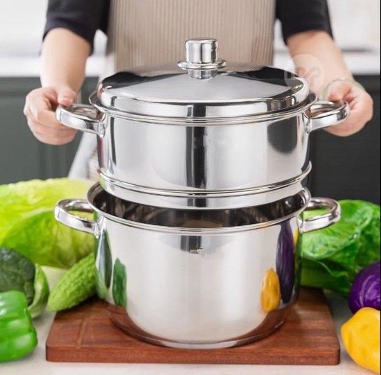 The ROYALTYLINE CP12L 26cm Couscous Pot is perfect and intended for preparing delectable steam dishes. Made from food-grade stainless steel, this cookware is safe for everyday cooking. A full cap base on the stacking steamer and saucepot feature a thick core surrounded by stainless steel for rapid, even heating. The lower part holds the water, boiled and crates steam, while the upper part holds the food. It’s the perfect size for steaming vegetables, seafood or meat dishes. Steaming retains vitamins and minerals, making it a healthier way to cook. Its dishwasher safe and suitable for all types of stoves, including induction.