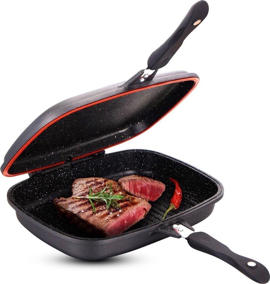 Is the perfect solution to start cooking healthy and oil free food without having to give up on your favourite foods. It is a versatile grill pan able to cook from vegetables, beef, chicken, fish and etc. This grill pan is specially designed to distribute heat and also to retain heat. The grill pan spreads heat evenly around the whole pan ensuring that your meat is cooked properly just the way you want it.