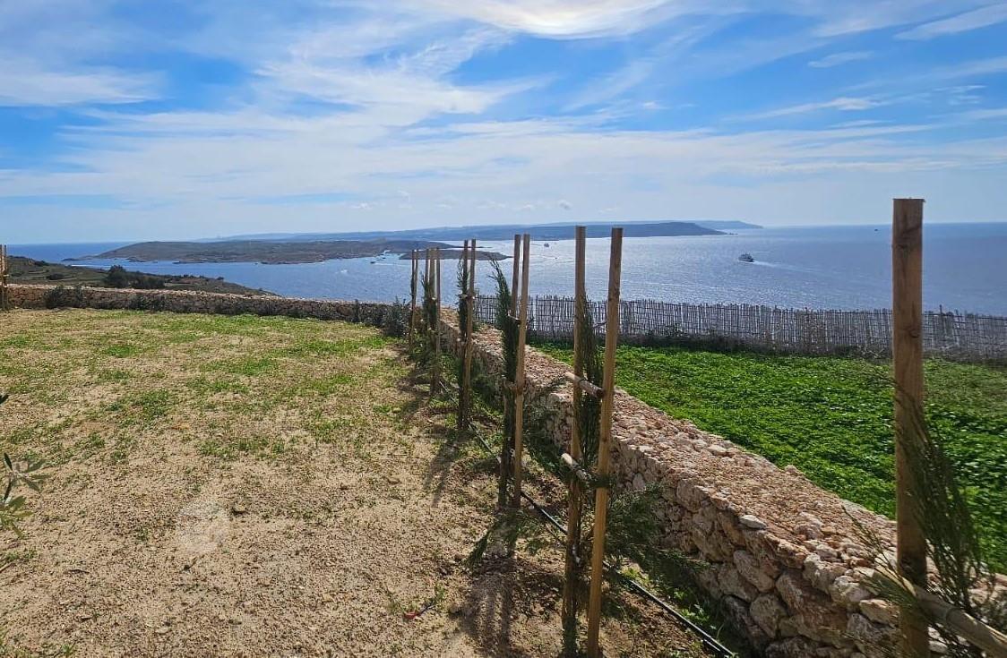 For Sale land surrounded by rubble wall and trees with channel and comino views in Ghajnsielem Gozo