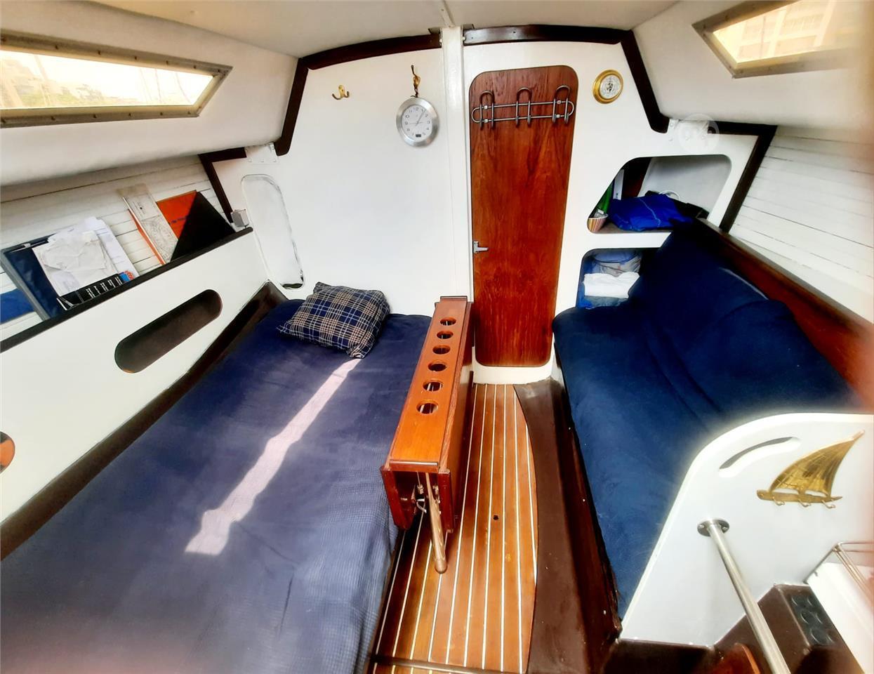 1 cabin for 2. Plus 3 people in the saloon. Lots of storage.