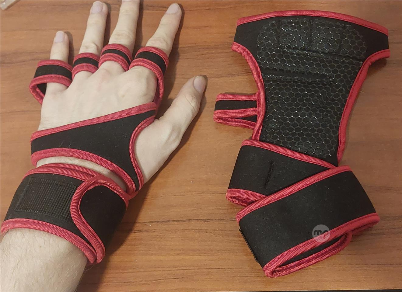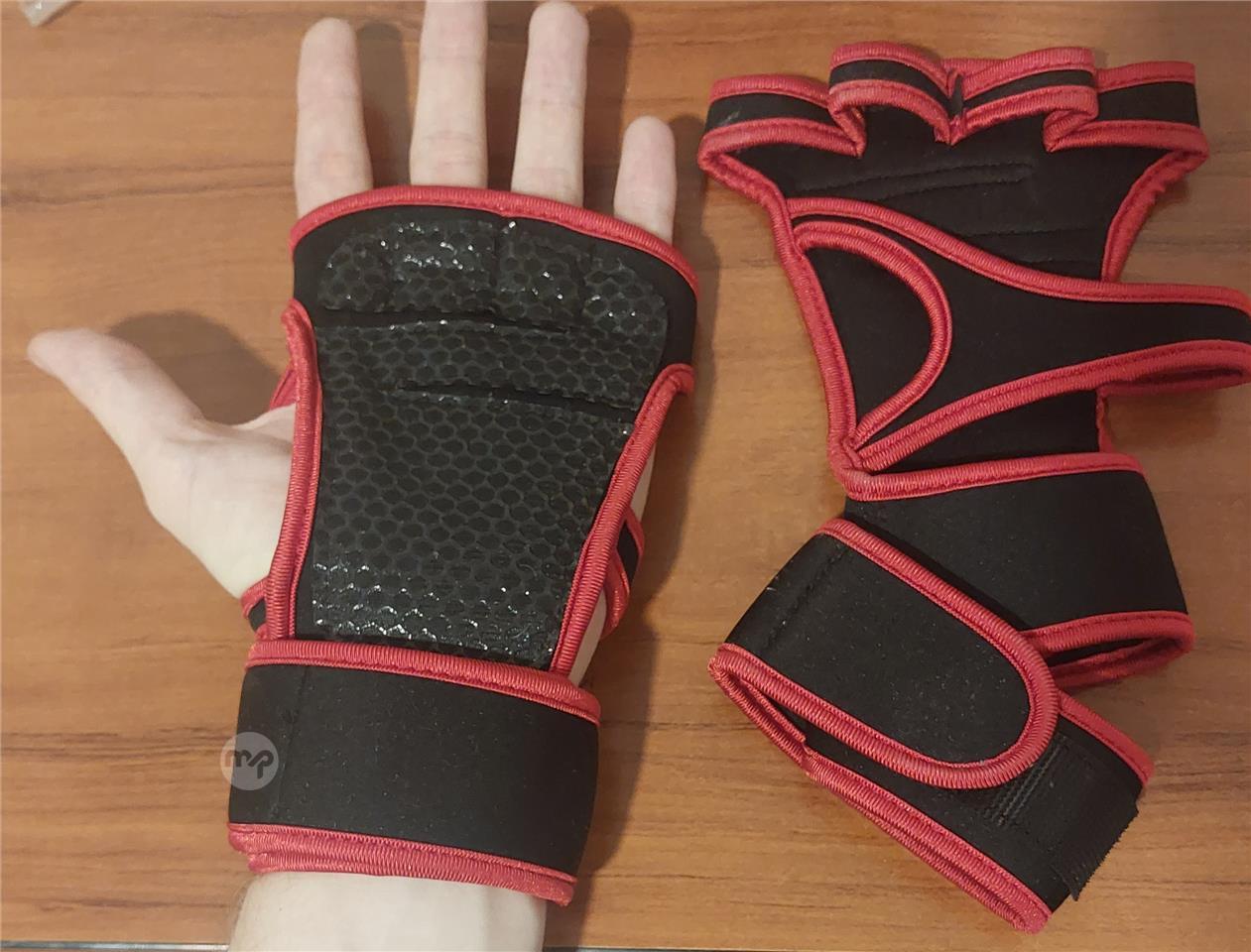 Red and black, fabric gloves for gym