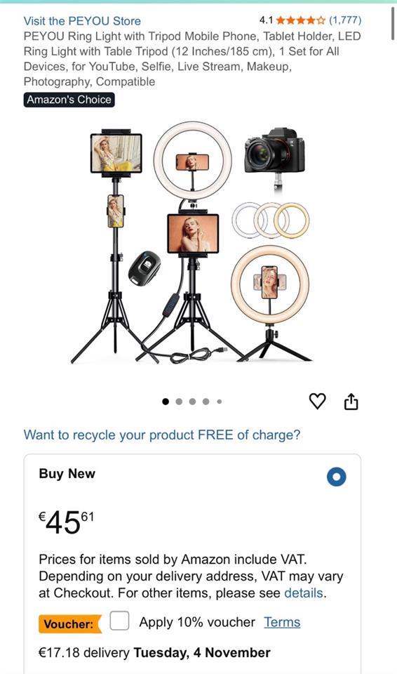 Ring Light with Tripod Mobile Phone, Tablet Holder, LED Ring Light with Table Tripod (12 Inches/185 cm), 1 Set for All Devices, for YouTube, Selfie, Live Stream, Makeup, Photography, Compatible