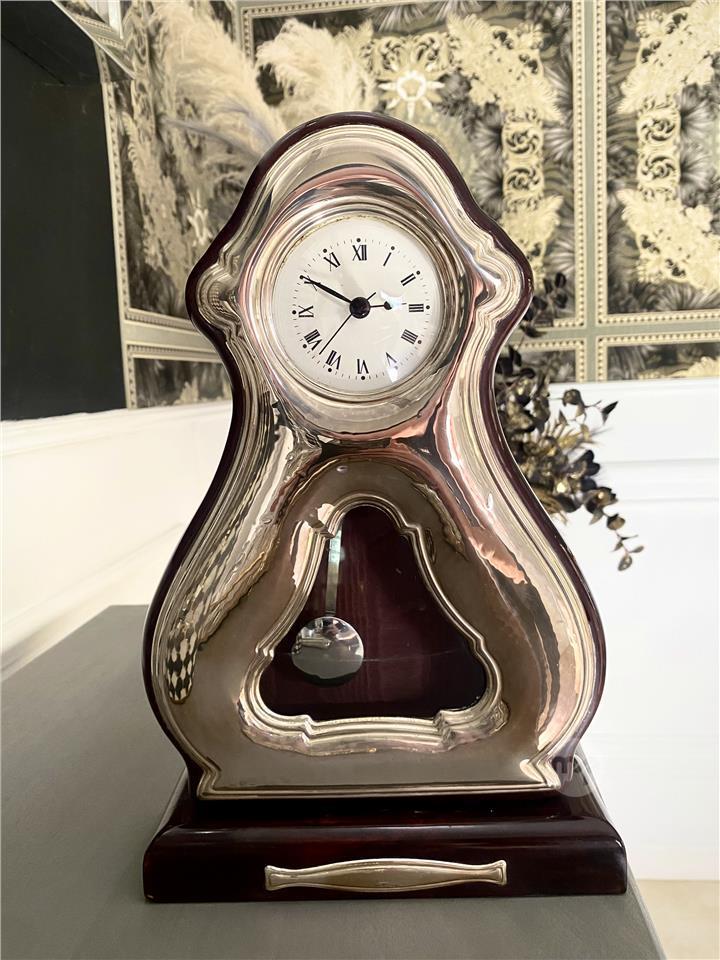A stunning Italian-made mantel clock combining sterling silver (925) with rich, polished mahogany wood — an elegant statement piece for any refined home or executive space.