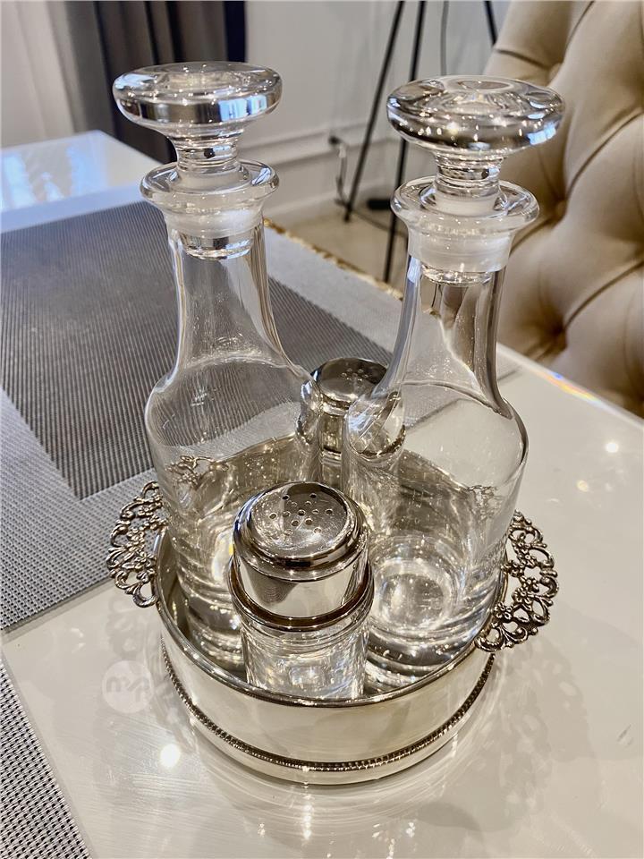 Vintage Sterling Silver (925) Cruet Set with Crystal Bottles – Italian, c. 1990