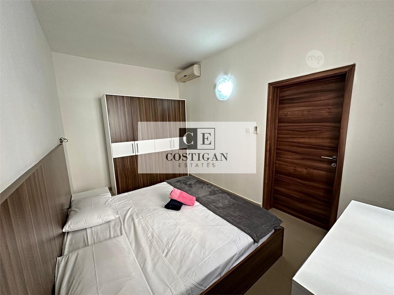 Gżira – Ground floor 2-bedroom maisonette available from 10th November 2025 for €1,200/month. It features a double bedroom with A/C, a single bedroom leading to a small backyard, a combined kitchen/living/dining area, and one bathroom. Suitable for up to 3 persons (no sharing). No pets allowed.