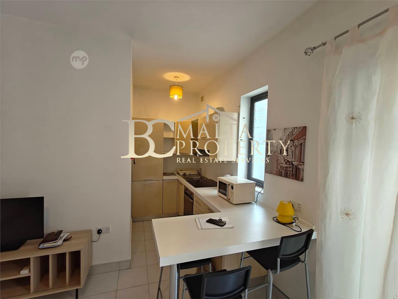 A 3rd floor squarish layout fully furnished 1 double / 1 spare room (which is ideal to be used as study office room or visitors room ) & 1 bathroom with a bath, apartment in a smart block with lift located a corner away from Tigne Point.