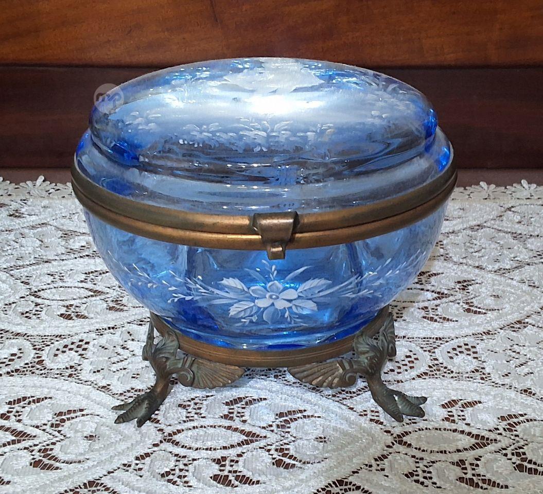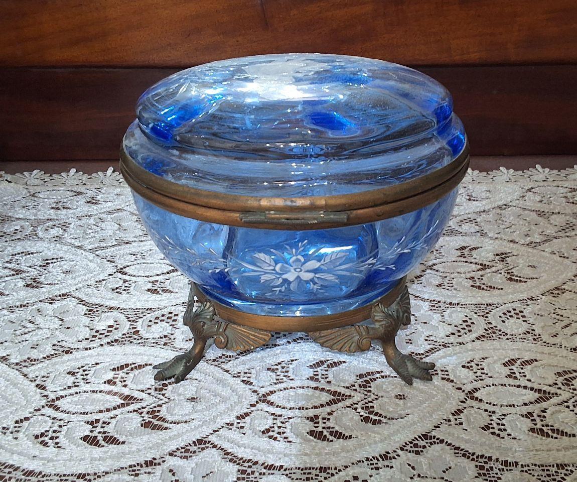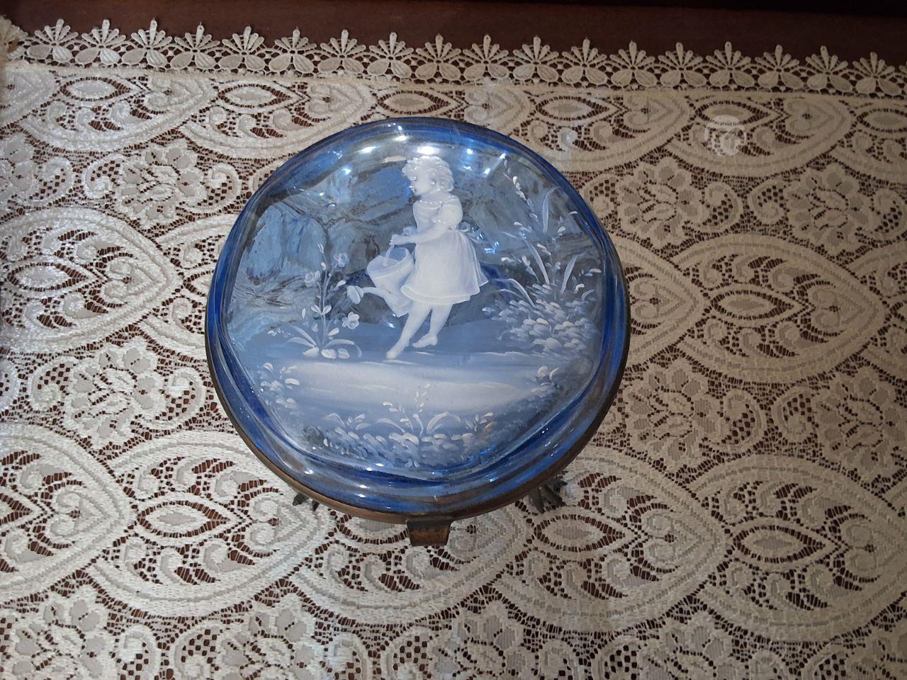 Antique Mary Gregory glass large trinket box