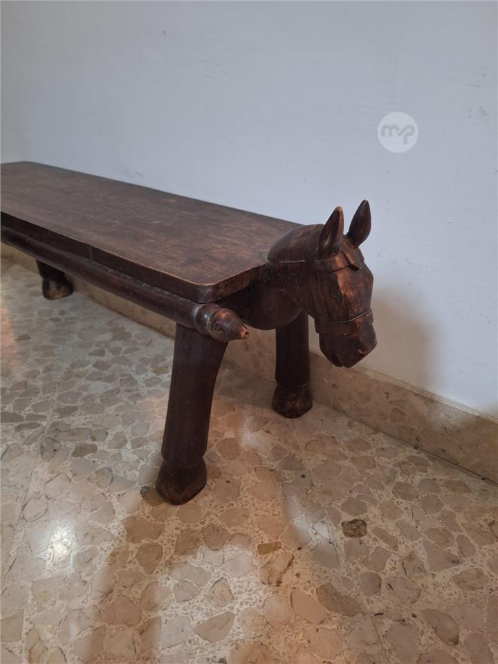 A low beautiful sturdy wooden bench with horse's head at both ends. Would look lovely with plants on top too.