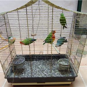 6 Love birds with cage. If interested please call or message the number provided.