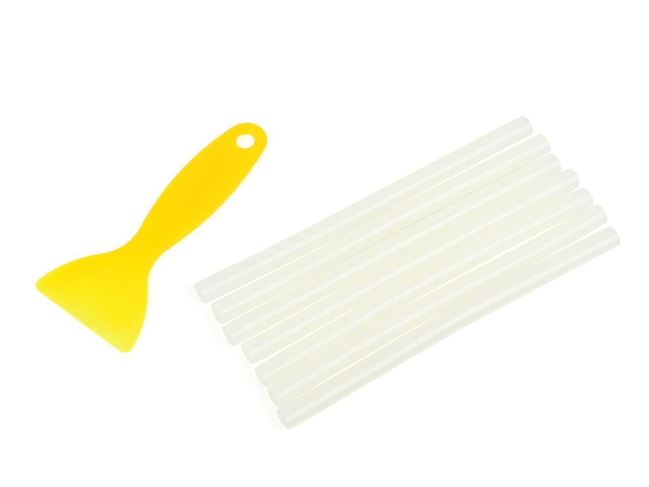 Repair kit designed for removing dents from car bodies. The kit is easy to use and, most importantly, 100% safe for car paint. The kit includes a dent removal hammer, a set of 28 mushrooms of various shapes and sizes, 7 hot melt glue sticks and a glue removal spatula.