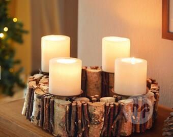 ADVENT WOODEN HAND-MADE WREATH TEALIGHT HOLDER CANDLESTICK Ø30 cm