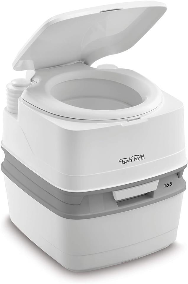 Comfortable, practical and durable portable toilet. It does not require connection to the sewer system or aqueduct. Basic model with natural bowl height and a high capacity waste tank. Equipped with integrated drain sleeve and lid lock. White and ivory finishes. TECHNICAL DATA: dimensions 414x383x427 mm; cup height 408 mm; manual unloading; rinsing system with bellows pump; waste tank capacity 21 L; flush tank capacity 15 L; weight 3.9 kg.