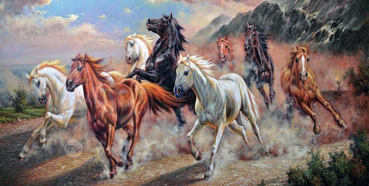 HORSES STAMPEE ------ ORIGINAL HAND PAINTING OIL ON CANVAS 70X50