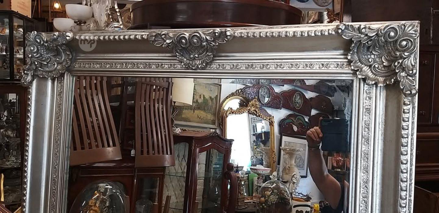 A Large silvered mirror Can be used vertical or horizontal Measures 200 x 100