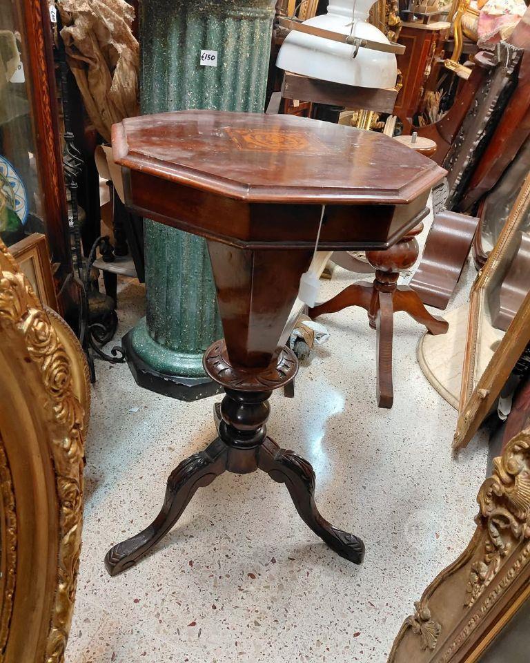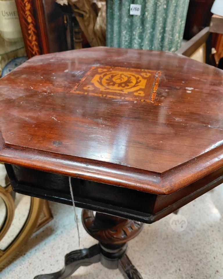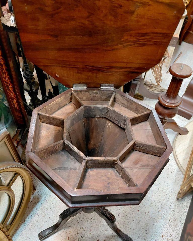 An Antique Octagonal shade top,lift up top Needle work Table/Occasional Table