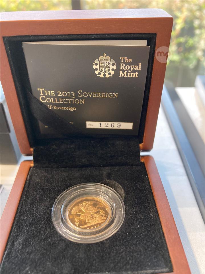 Half gold sovereign 2013 in a beautiful wooden box with a certificate ELIZABETH II Perfect for a Christmas gift, birthday, wedding, or Holy Communion