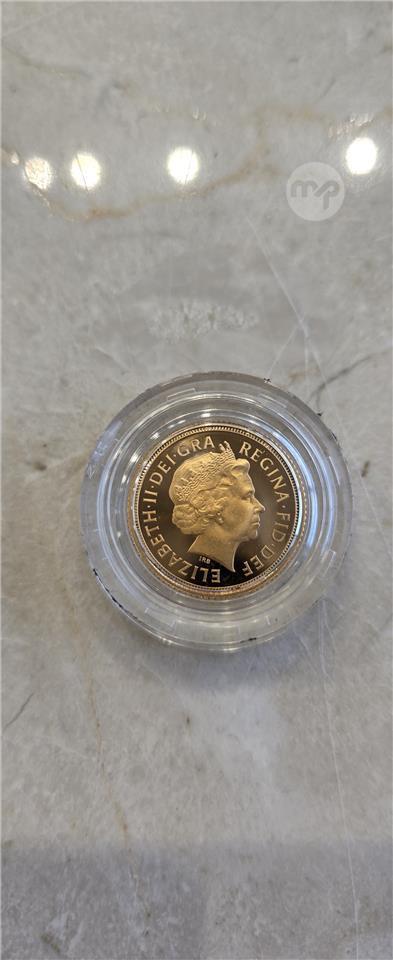 half gold sovereign ELIZABETH II , in a beautiful wooden box with a certificate