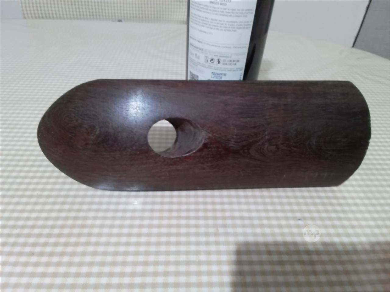 Decorative contraption for holding wine bottle, ideal for party table. Made in France by R Atelier using African hardwood.