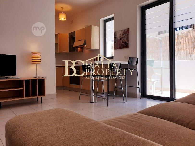 A 3rd floor squarish layout fully furnished 1 double / 1 spare room (which is ideal to be used as study office room or visitors room ) & 1 bathroom with a bath, apartment in a smart block with lift located a corner away from Tigne Point Shopping Mall.