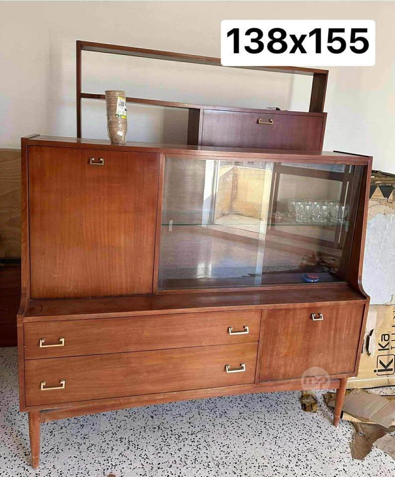 Mid-Century Modern sideboard with glass display hutch.