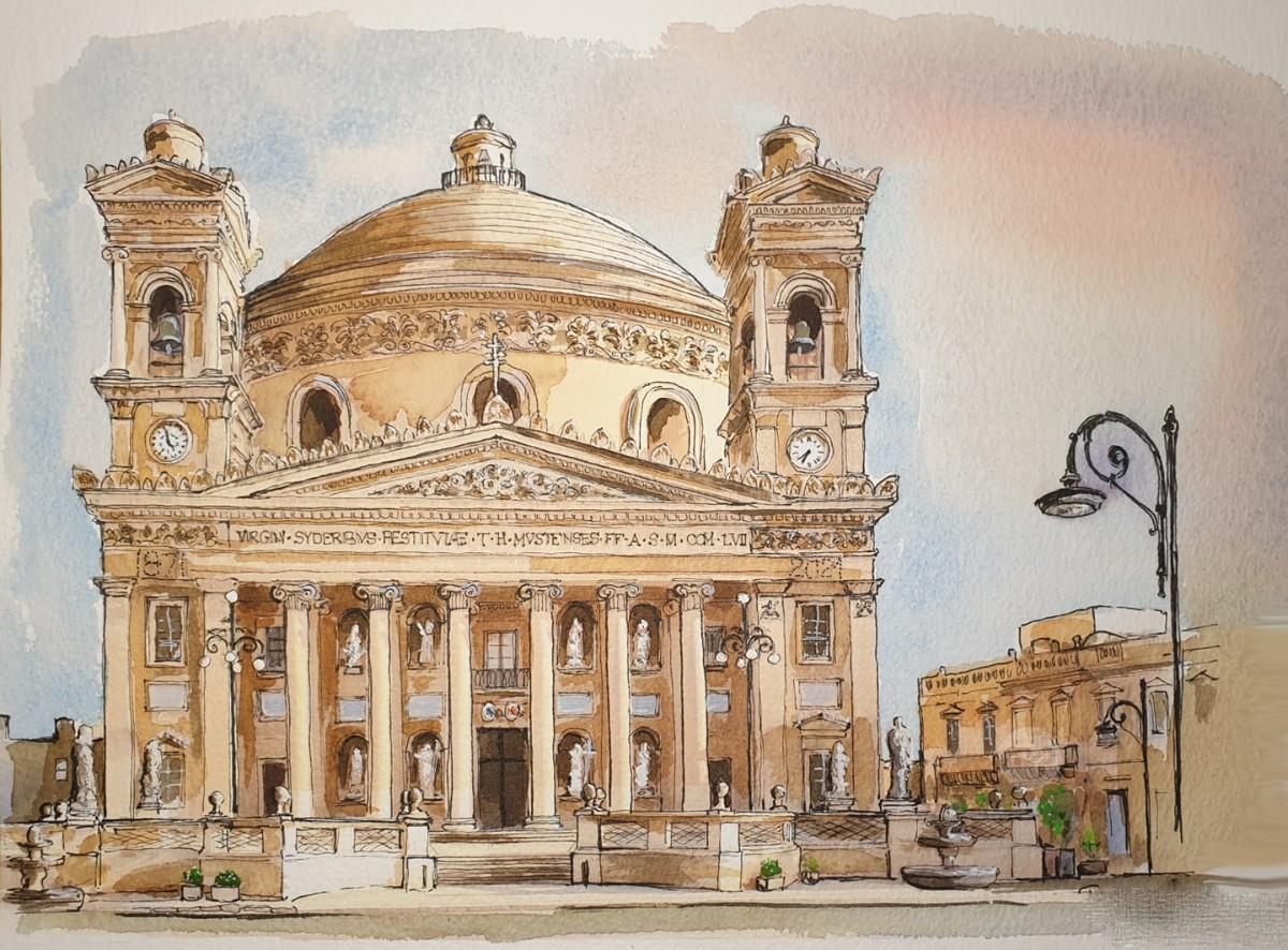 MOSTA CHURCH MALTA---- ORIGINAL HAND PAINTING OIL ON CANVAS 70X50