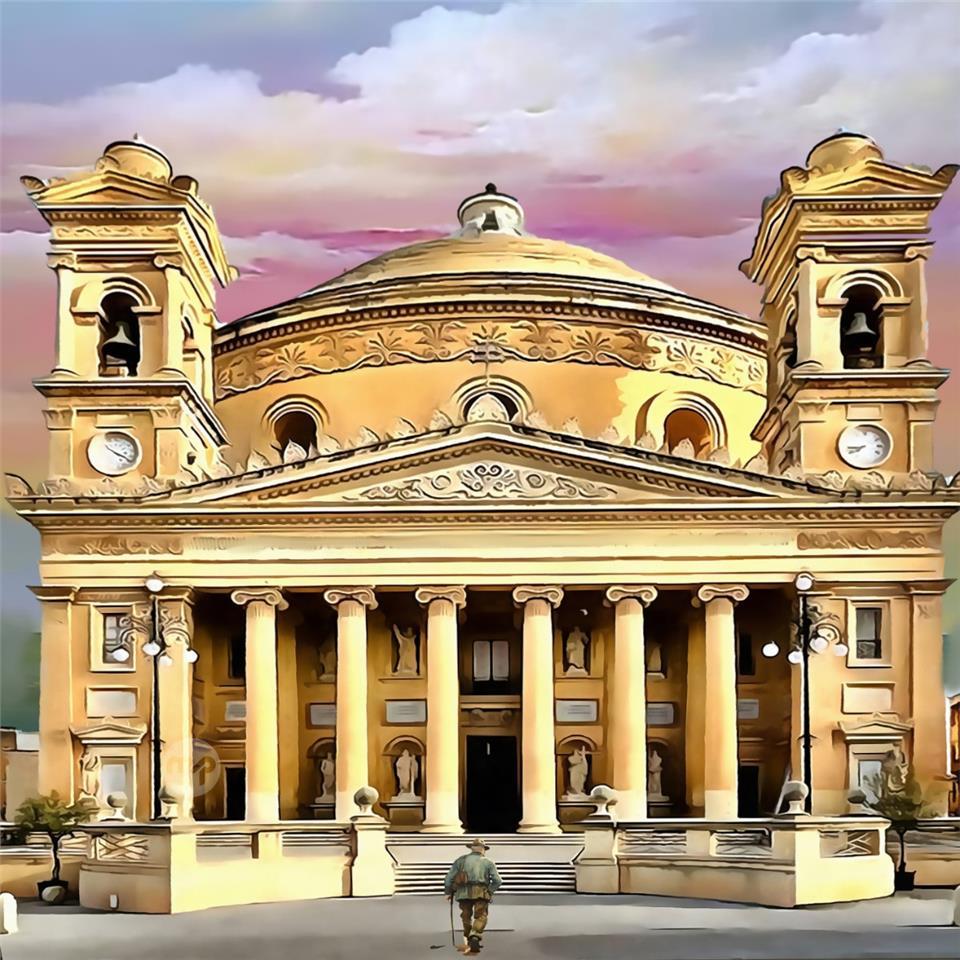 MOSTA THE ROTUNDA CHURCH MALTA ----- ORIGINAL HAND PAINTING OIL ON CANVAS 70X50