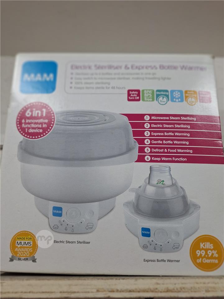 MAM Electric Steriliser & Express Bottle Warmer features 6 innovative functions in 1 device.