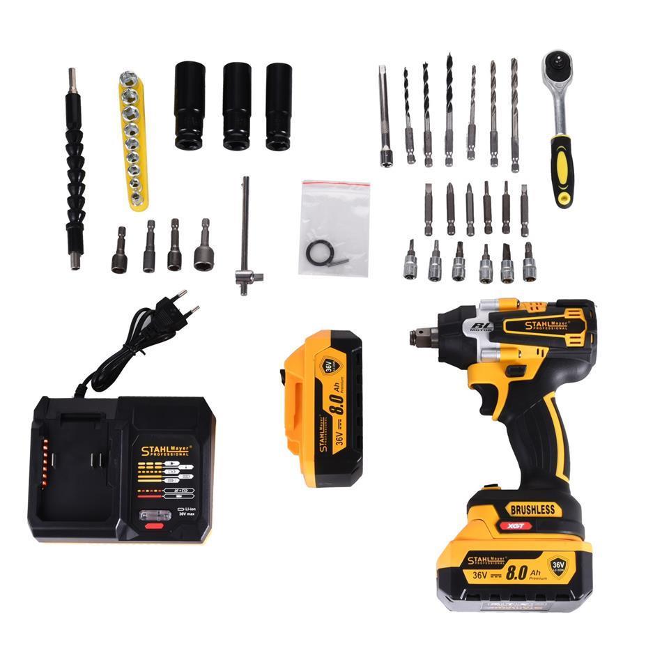 Impact Wrench on 1/2 and Impact. 2v1 StahlMayer 36v – 850nm. + 40 pieces of tools