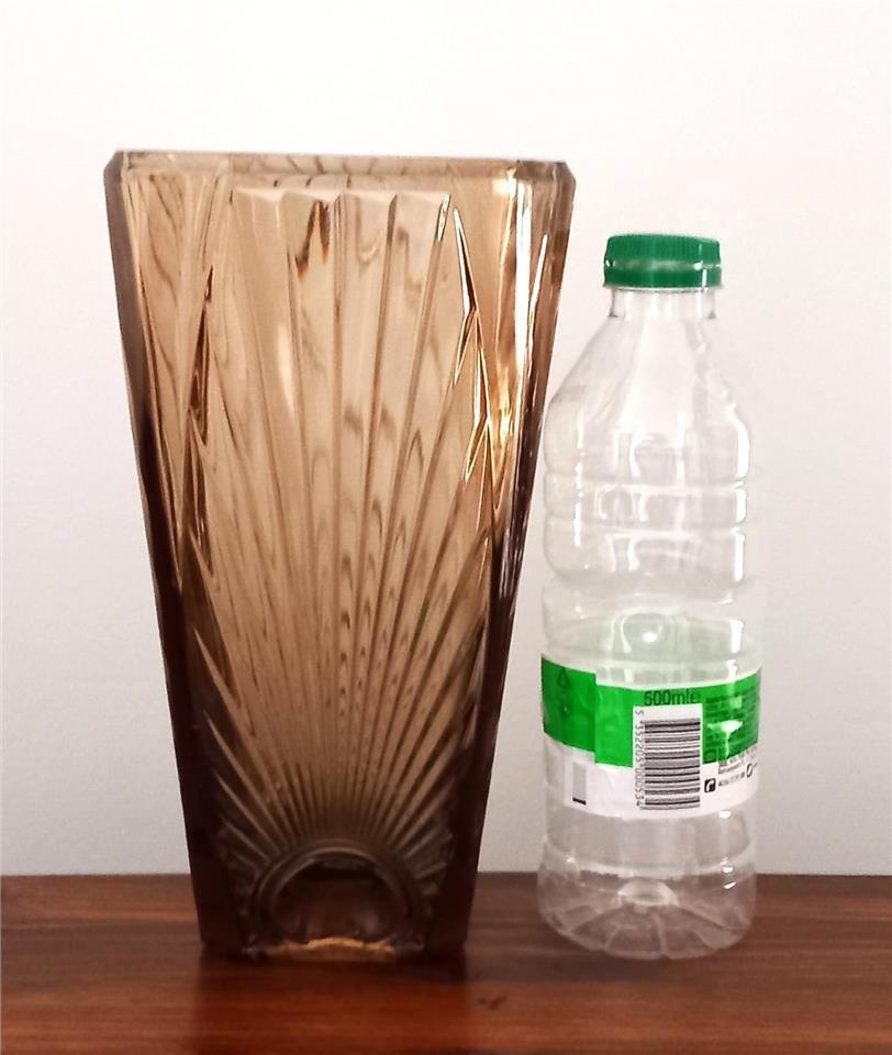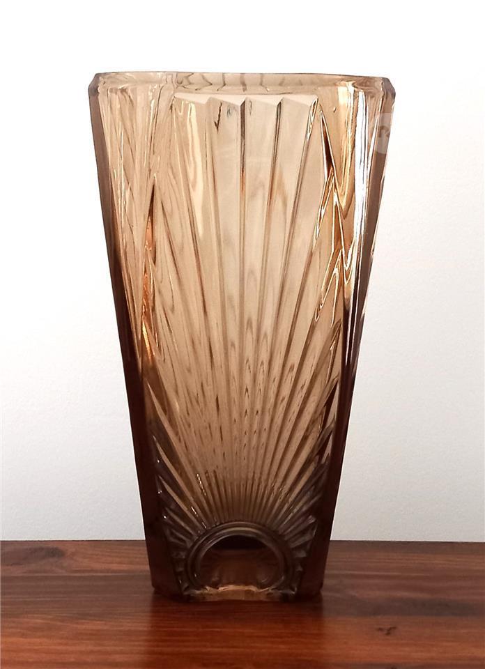 ANTIQUE ART DECO BROWN GLASS VASE - SUNBURST