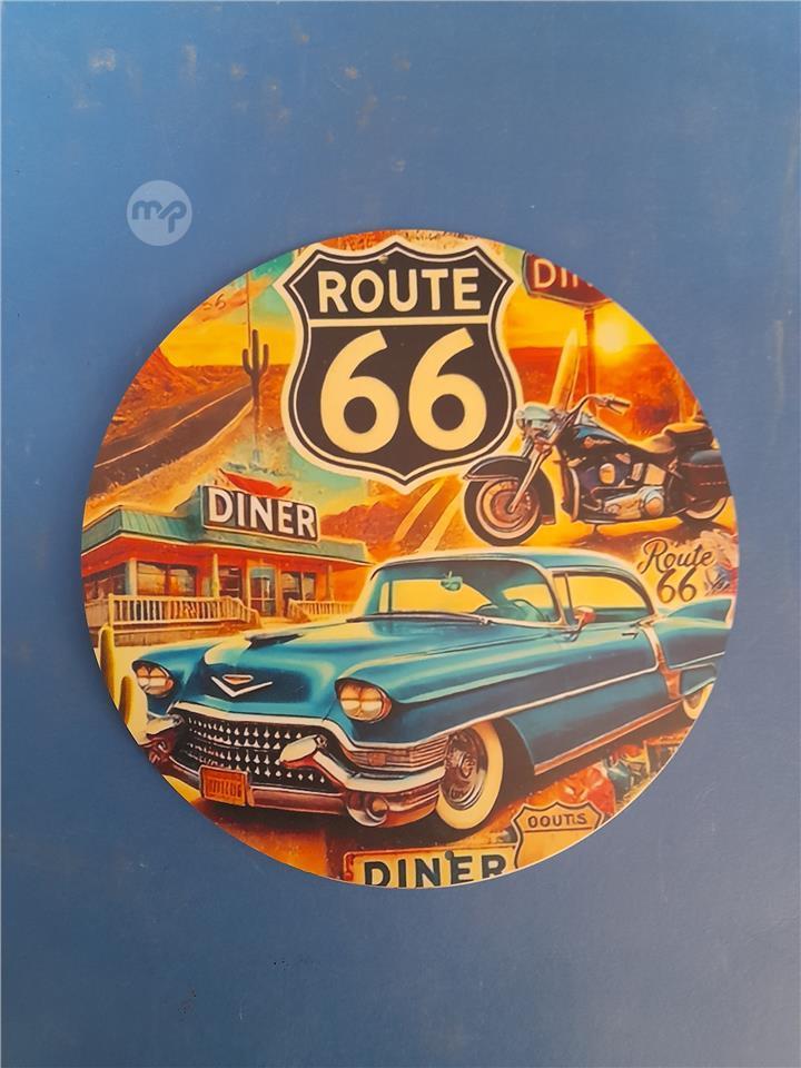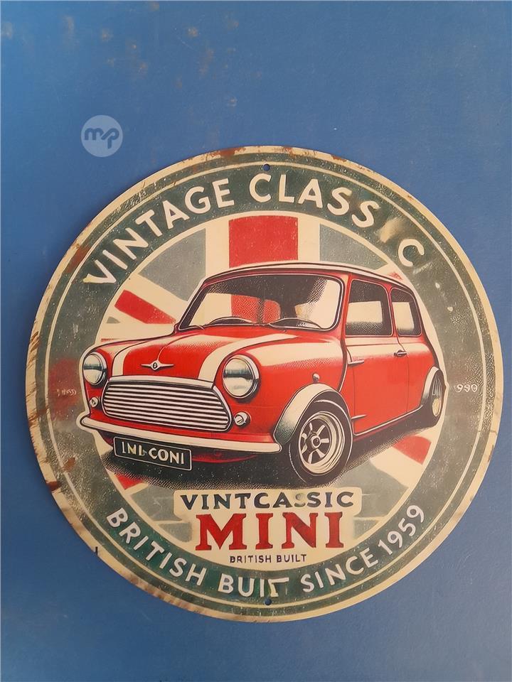 Tin Signs at 5e each. Diameter 20cm. Lots to choose from.