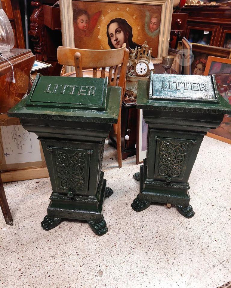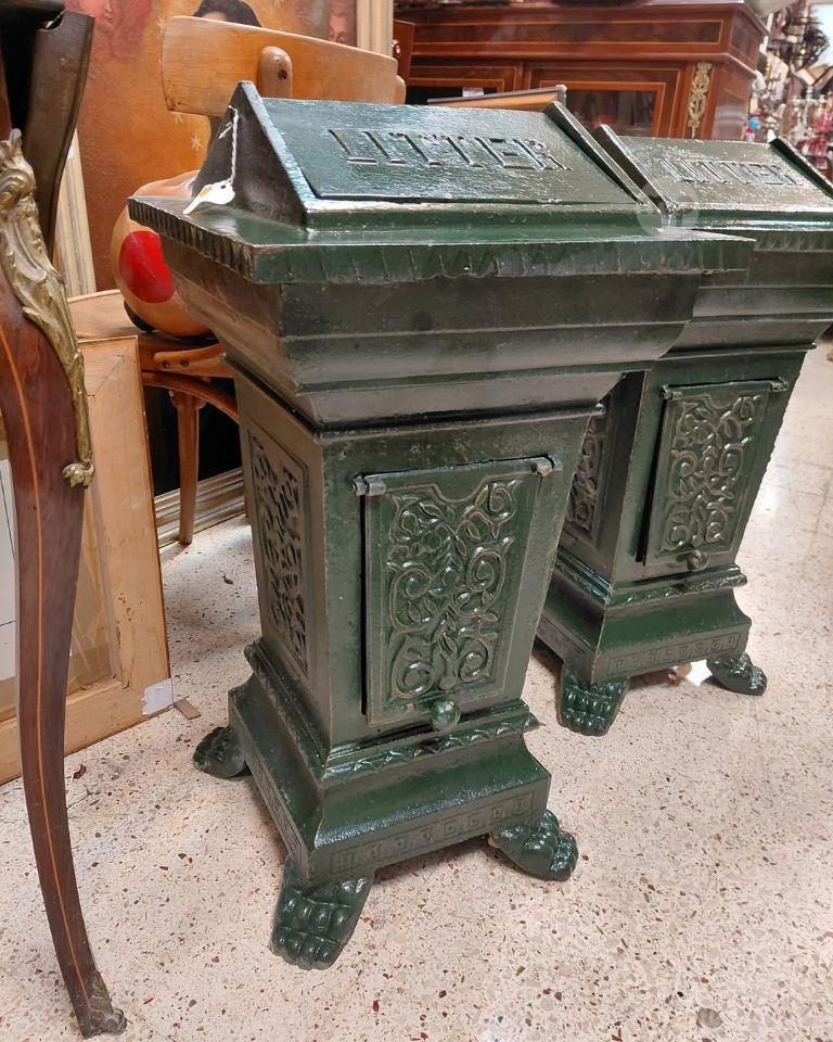 TWO TRADITIONAL VICTORIAN STYLE Cast iron litter bins Dark Green colour