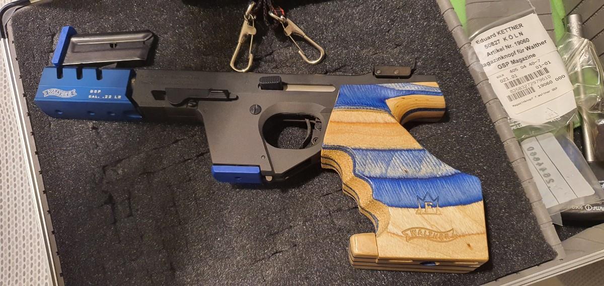 Included is the GSP Expert First Edition with original Walther aluminium case, the full .22 LR conversion kit in rifle configuration with laminated thumbhole stock and stainless precision barrel, as well as a mounted Bushnell Banner 3–9×50 scope (model 71-3950, waterproof, clear optics) and the corresponding Walther tools and small parts. All components belong together and are correctly matched; nothing has been mixed or replaced.