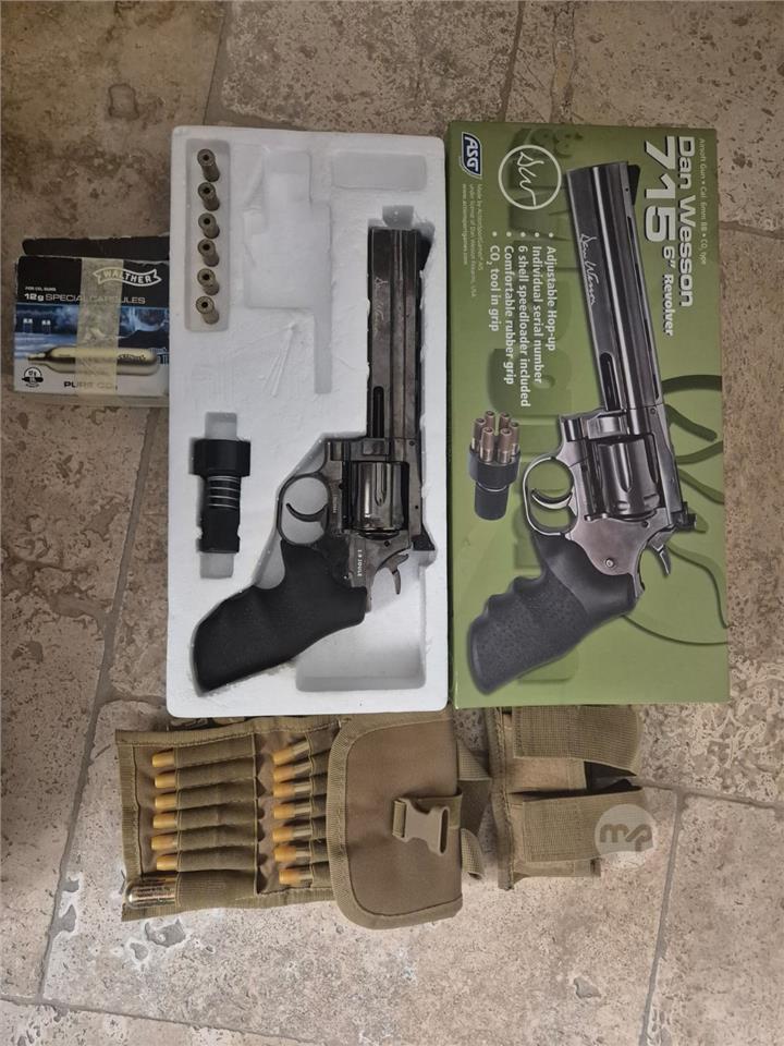 ASG Dan Wesson Airsoft replica with additional speed loaders, additional cartridges and a box of maintenance CO2. Like new barly used.