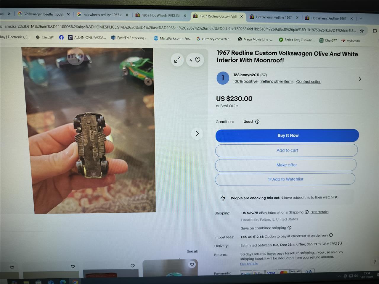 1967 Hot Wheels Redline Custom Volkswagen vintage die cast car vehicle