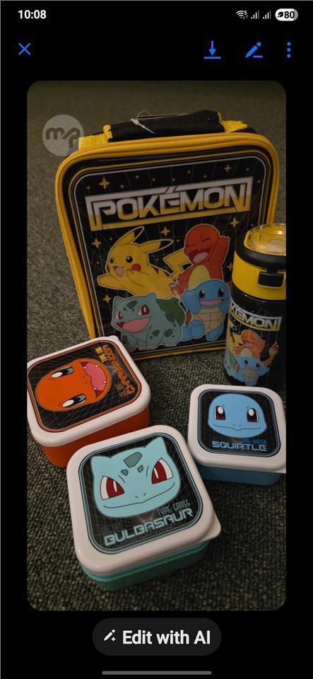 1x pokemon lunchbox bag cooler with 3 different sized lunchboxes and a bottle .✅️ 8 euro