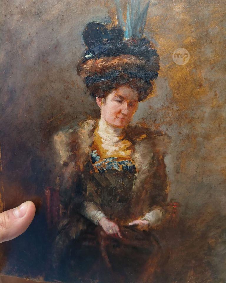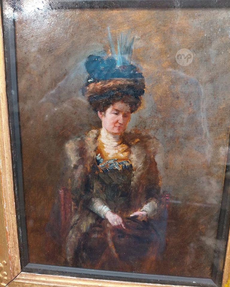 An antique oil on board painting Showing a Noble lady, dressed in the period