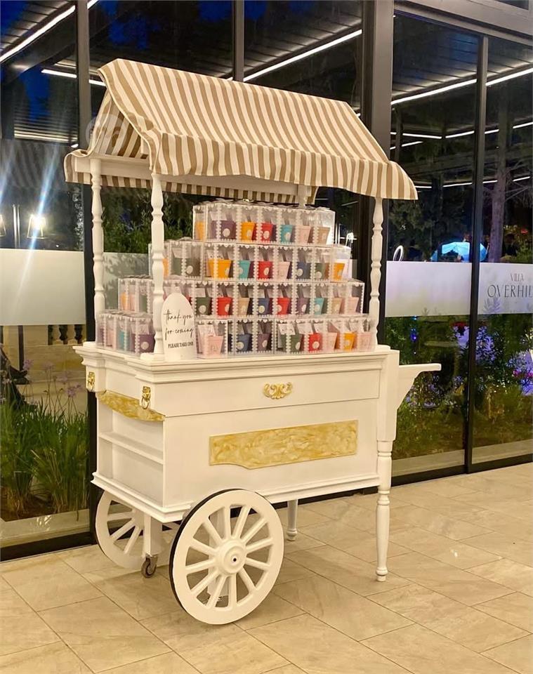 Our charming wedding cart is the perfect addition to your celebration — beautifully styled and ready to be filled with delicious sweets, personalized souvenirs, or both!