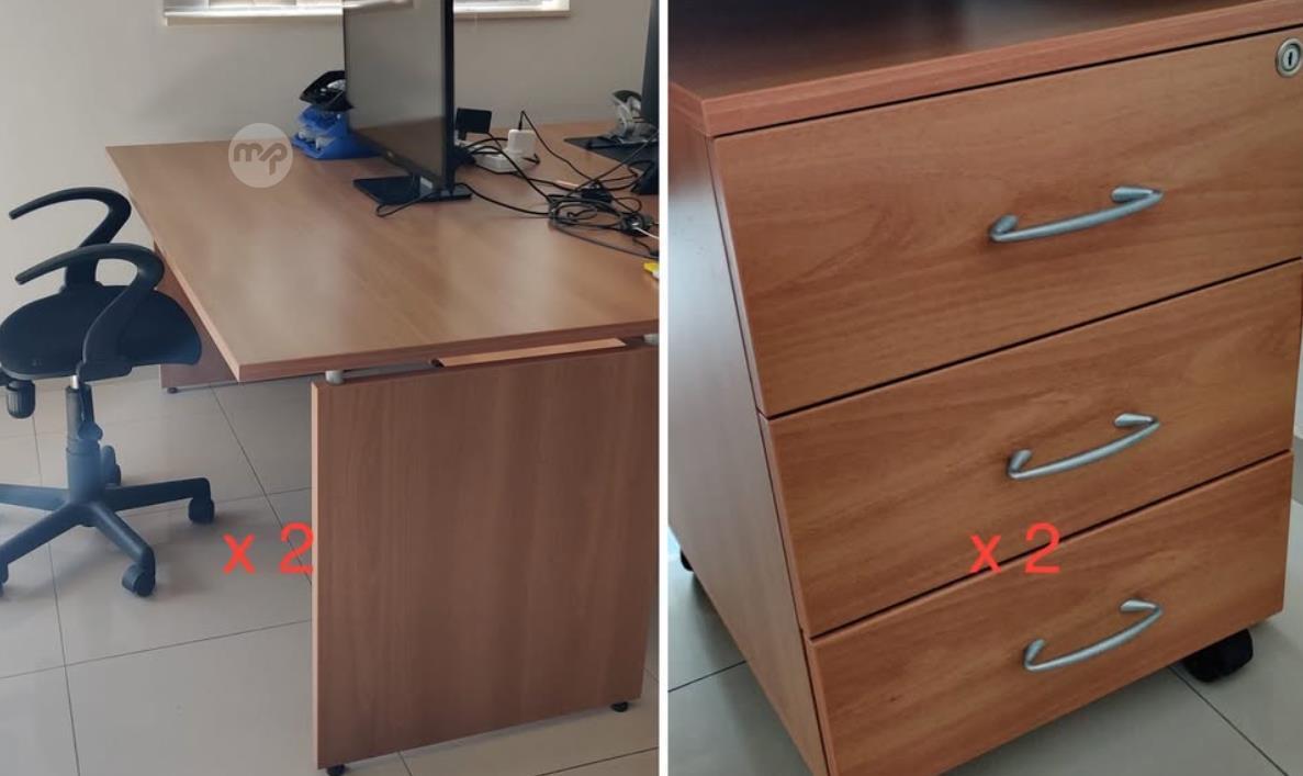 2 sets of office desks with chest of drawers. Seller can help take apart the furniture. Easy parking outside.