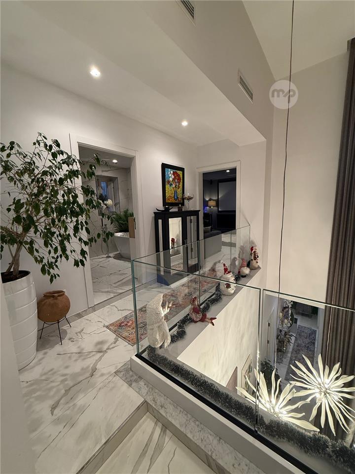 Upstairs, a welcoming landing serves as a secondary living space and leads to a private cinema and a versatile main bathroom, easily convertible into yet another luxury suite.