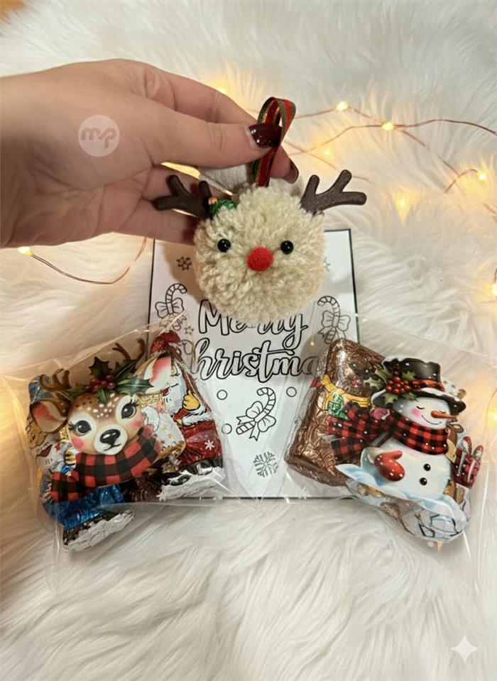 • Choose a cute Snowman figurine ☃️ or a Reindeer 🦌 pom-pom keychain/ornament.
