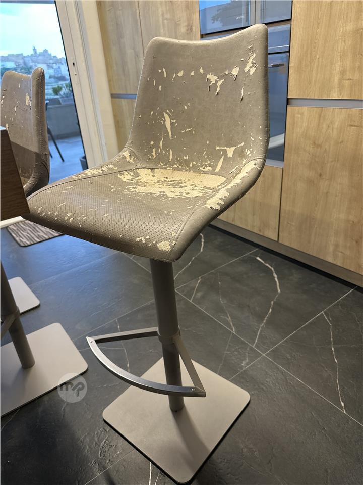 Selling a set of 6 used dining chairs and 3 stools. Frames and structure are in excellent condition. Only the faux-leather seating is superficially damaged by pets, so they just need simple re-upholstery.